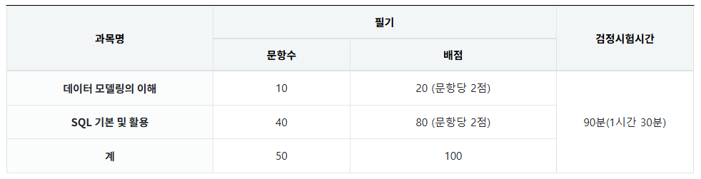 - 합격 기준 : 60점 이상 (과락 : 과목별 40% 미만 득점 시 불합격)