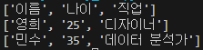 writer.writerow(["민수", 35, "데이터 분석가"])