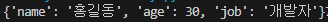 print(person) # 출력: {'name': '홍길동', 'age': 30, 'job': '개발자'}