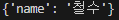 - 결과적으로 딕셔너리는 {'name': '철수'}만 남습니다.'