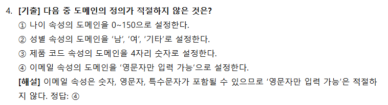 속성은 데이터를 저장하는 단위이며 도메인은 해당 속성이 가질 수 있는 값의 집합을 정의한다. 속성이 적절한 도메인을 가질 경우 데이터의 품질이 향상되며 데이터베이스의 일관성을 유지할 수 있다. 따라서 데이터 모델링 과정에서 속성과 도메인의 정의는 중요한 설계 요소가 된다.