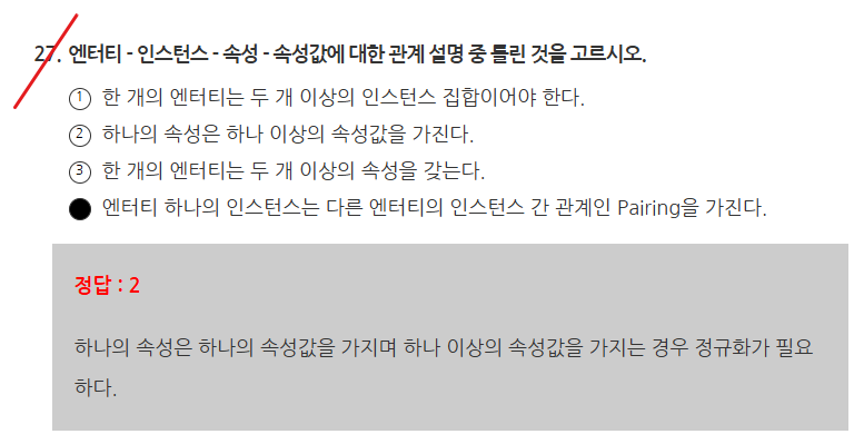 | 엔터티 | 여러 인스턴스의 집합 | 반드시 둘 이상 인스턴스 보유 |
