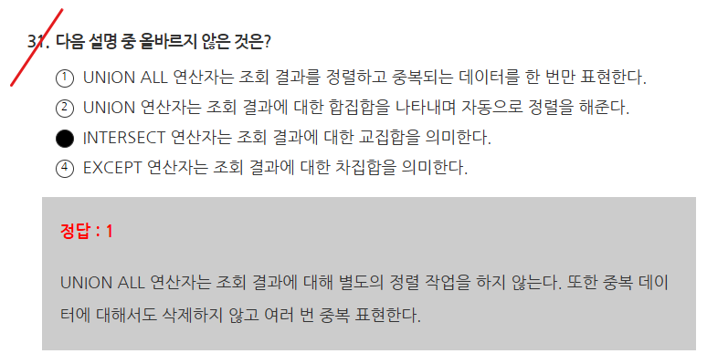 | 연산자 | 합집합 | 중복제거 | 정렬 | 설명 |