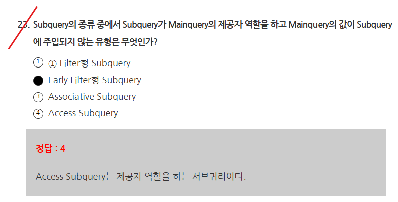 | Access 서브쿼리 | 메인쿼리에 직접 데이터를 제공하는 역할 | 없음 (제공만 함) |